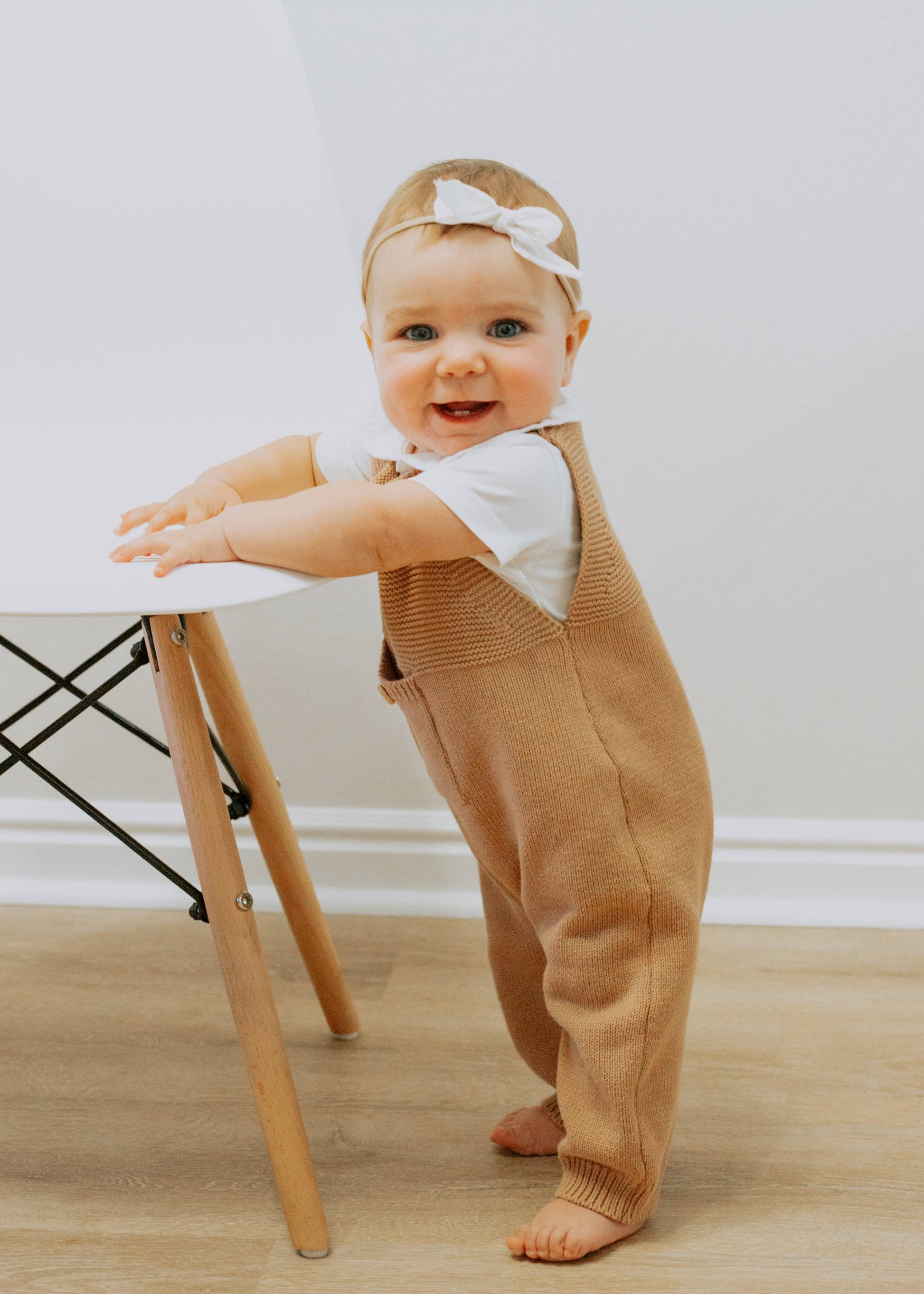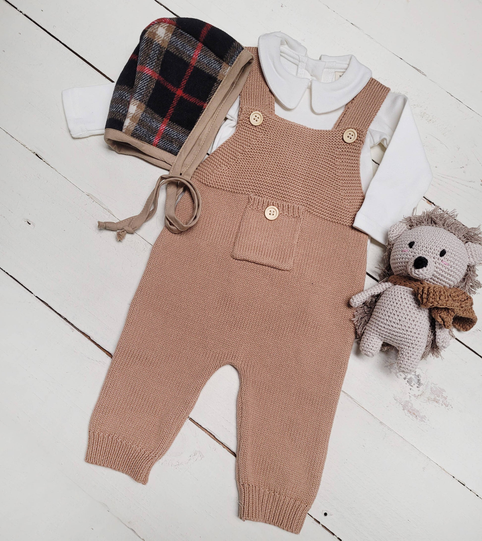 Made from 100% Cotton with wooden buttons at shoulder straps. Current batch fits true to size.