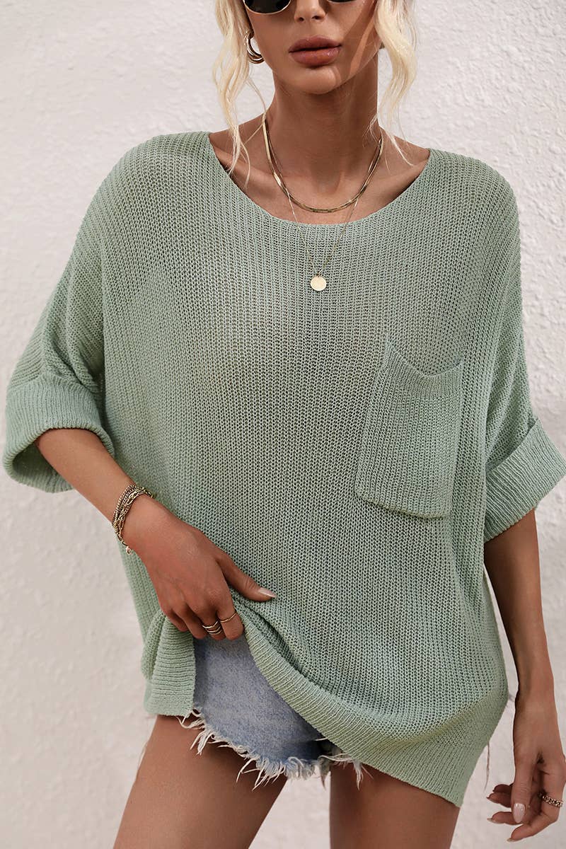 Loose Fit Rolled 3/4 Sleeve Knit Top