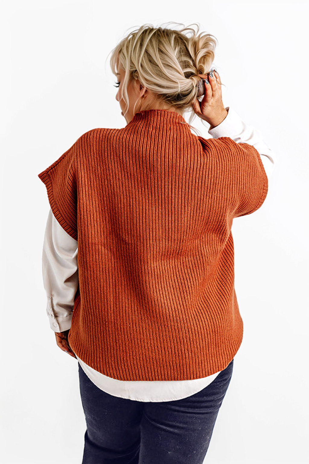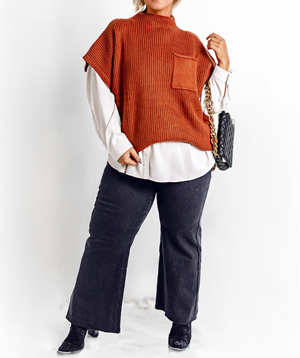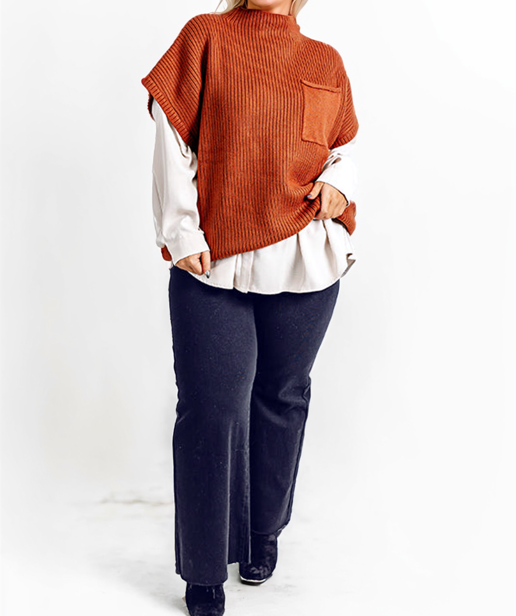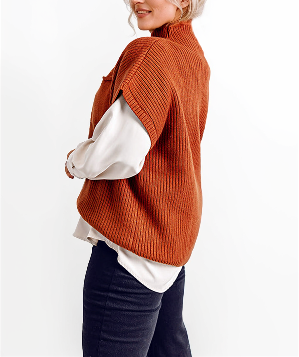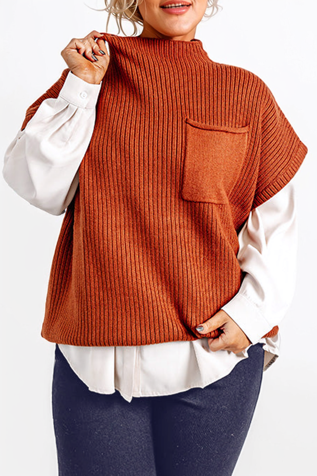 Mock Neck Chest Pocket Short Sleeve Sweater
