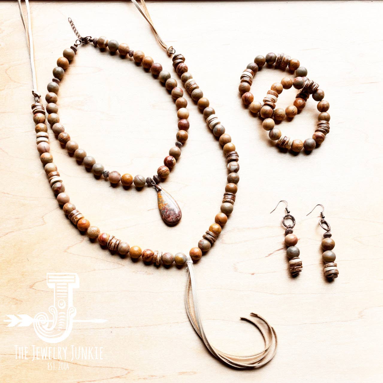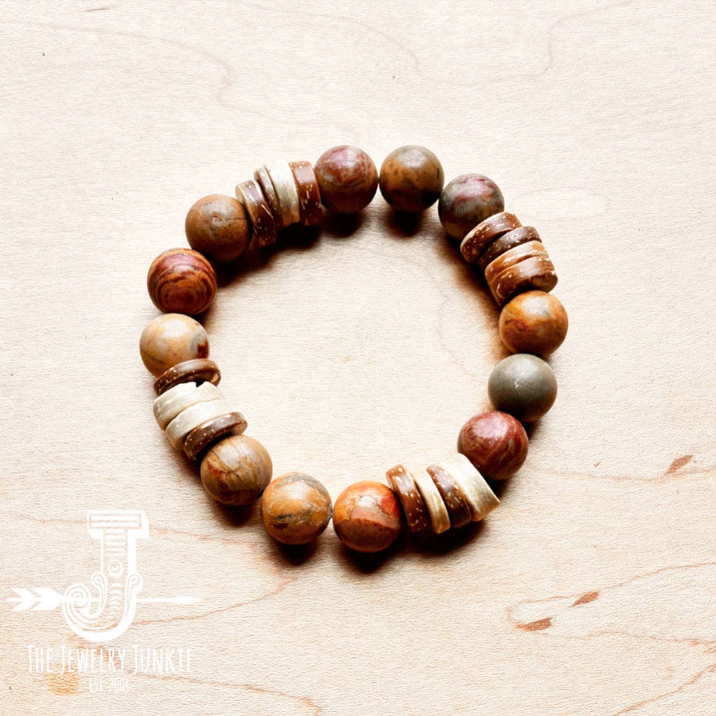 * This handmade beaded bracelet features jasper and wooden beads, creating a unique, earthy look. * Beautiful and versatile, this beaded boho bracelet can be worn with any outfit. * Although this handcrafted bracelet will resemble the photo, no two pieces of our boho fashion jewelry are identical.